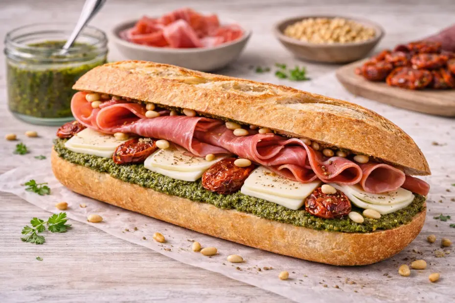 Pour encore plus de gourmandise, passez le sandwich 1 à 2 minutes au grill : la mozzarella devient légèrement fondante et les arômes du pesto sont sublimés.