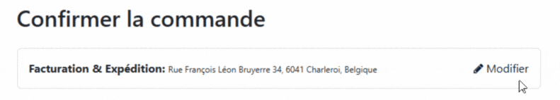 - Une fois votre adresse d'expédition modifiée, cliquez sur le bouton Confirmer. Vos changements seront alors enregistré pour cette fois et les autres commandes à venir.
