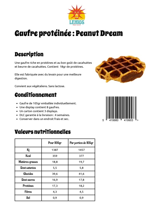 LEHIOS - PROTEIN WAFFLE "PEANUT DREAM" PEANUTS 105GR