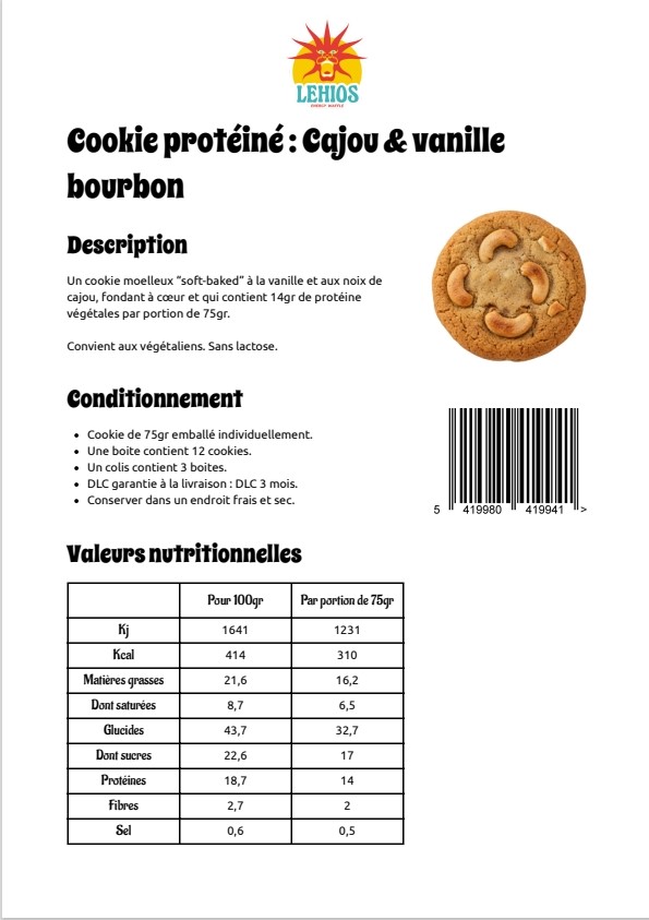 LEHIOS - PROTEÏNECOOKIE CASHEW & BOURBON VANILLE 75GR