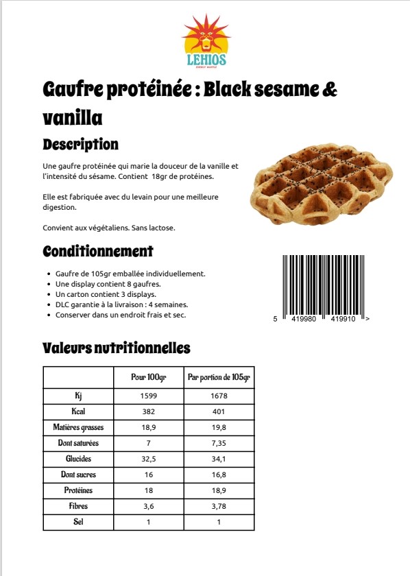 LEHIOS - PROTEÏNEWAFEL ZWARTE SESAM & VANILLE 105GR