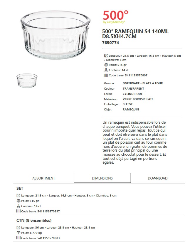 500° GLAZEN RAMEKINS 8,5X4,7CM 14CL STAPELBAAR