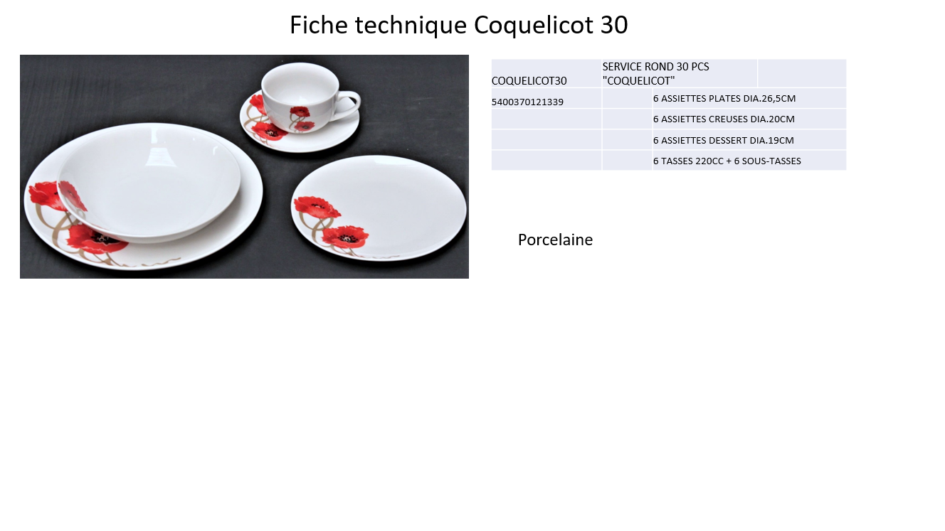SERVICE DE TABLE "COQUELICOT" SET 30 PCS